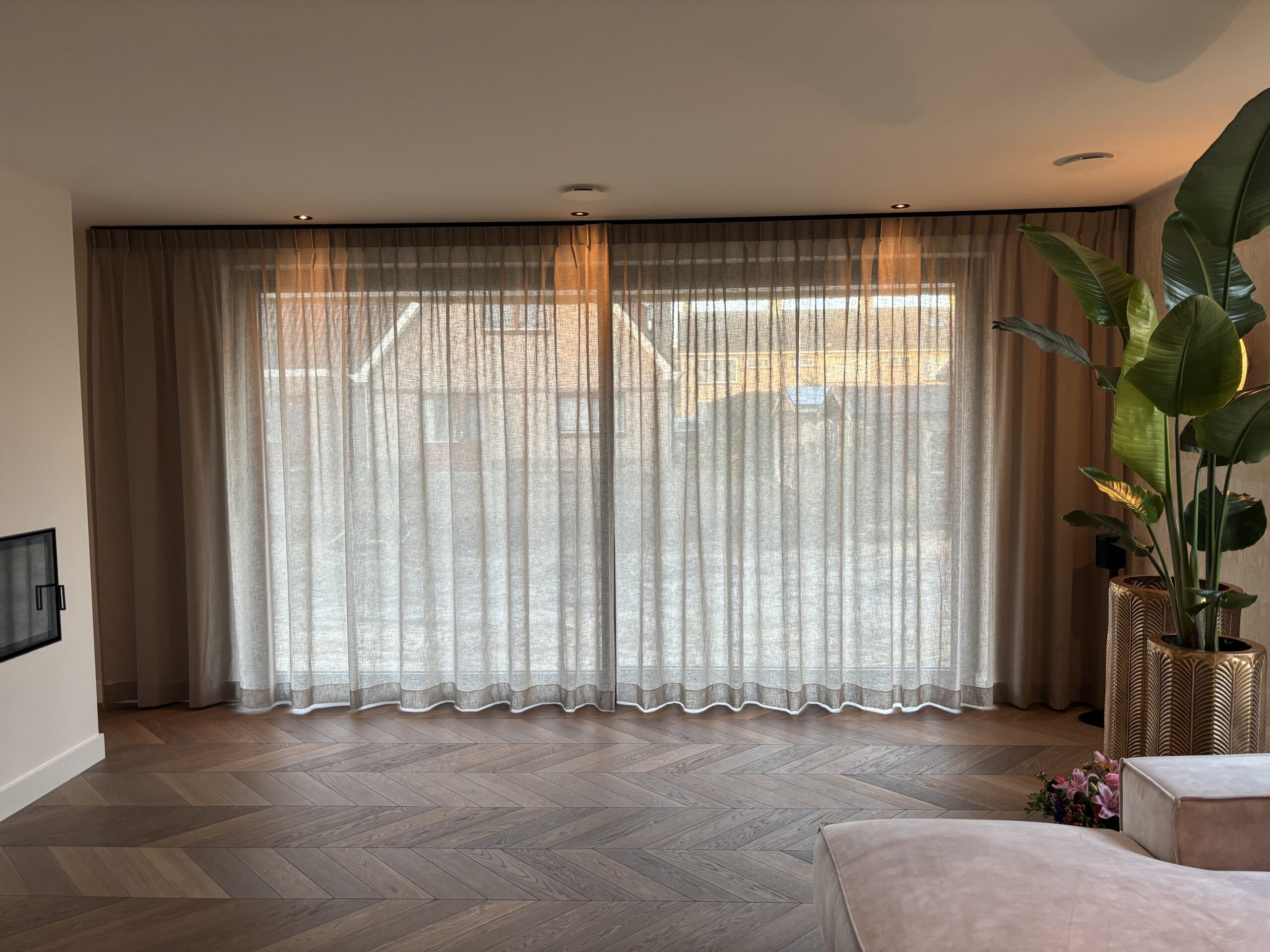 Gordijnen kunnen op verschillende manieren worden bevestigd, bijvoorbeeld met een roede, rails of klemmen. Ook installeren wij elektrische gordijnrails van Somfy, die ervoor zorgen dat de gordijnen op bepaalde tijden automatisch openen en sluiten. Dit biedt gemak en houdt uw huis levendig, zelfs wanneer u bijvoorbeeld op vakantie bent.